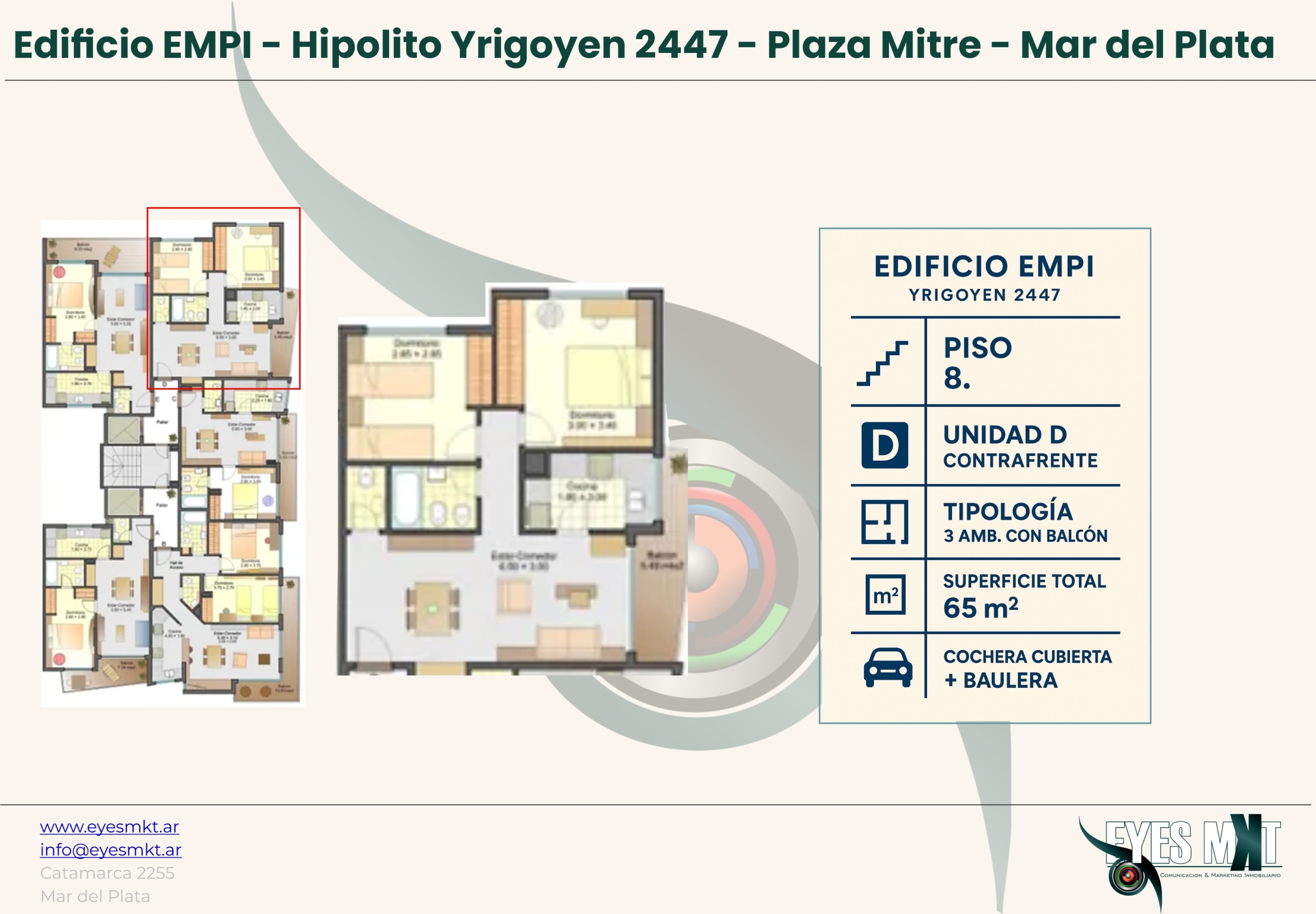 Venta de departamento 3 ambientes en Mar del Plata, ubicado en el reconocido Edificio EMPI, a solo 50 metros de Plaza Mitre, uno de los puntos más buscados por su conectividad, entorno y valorización constante.