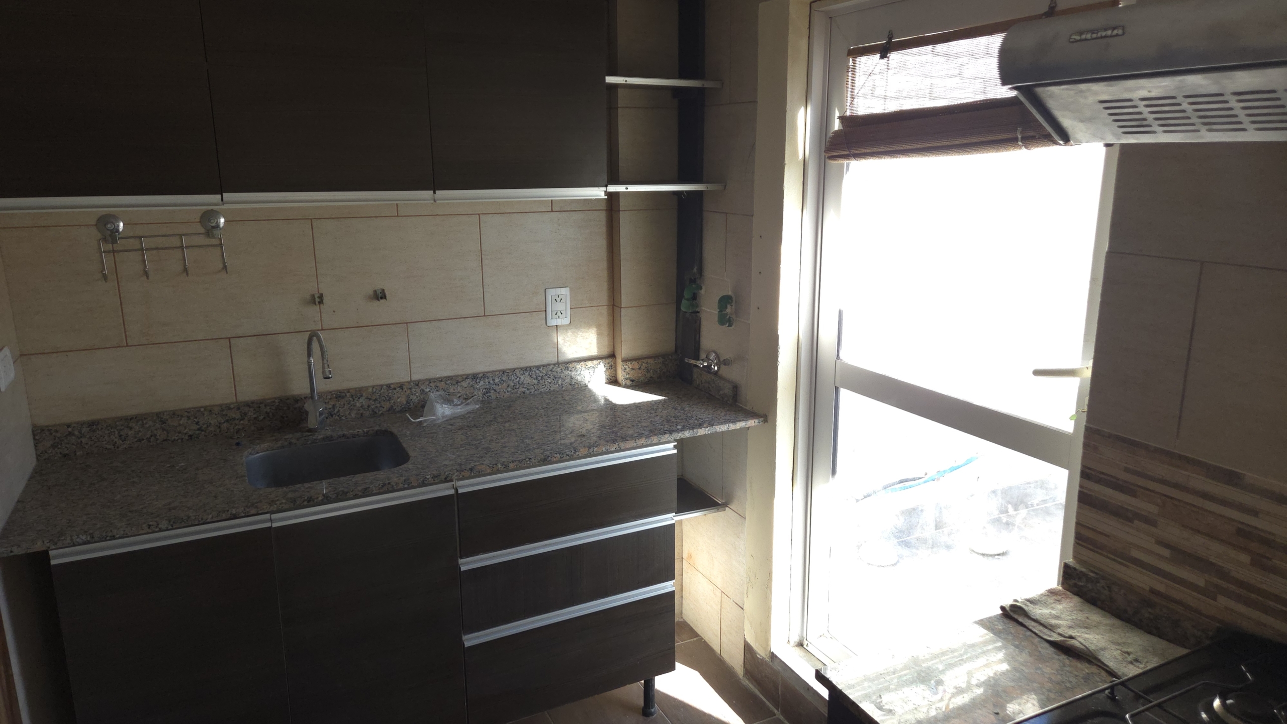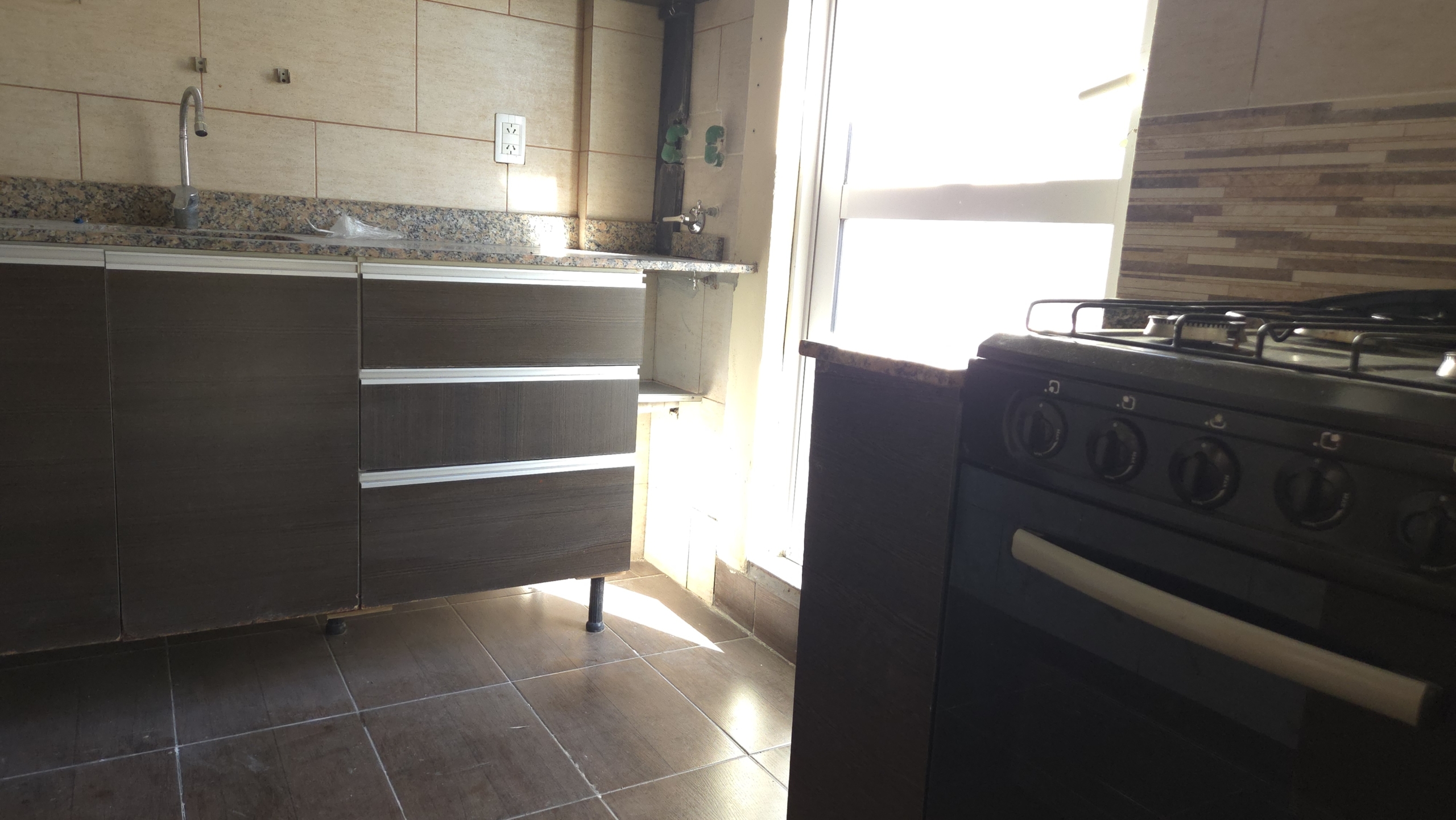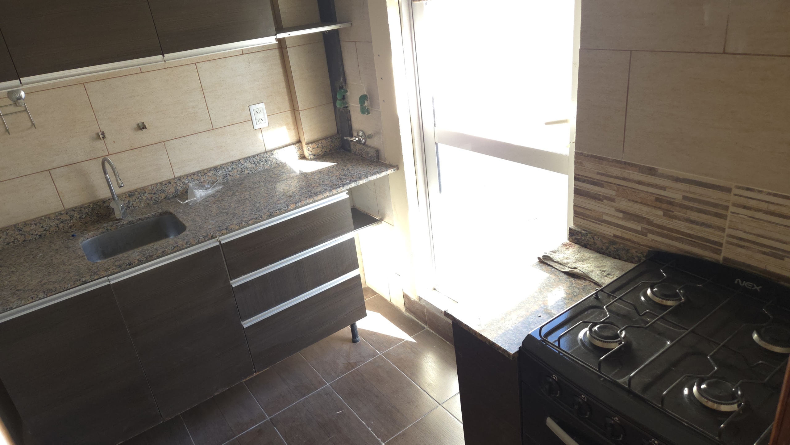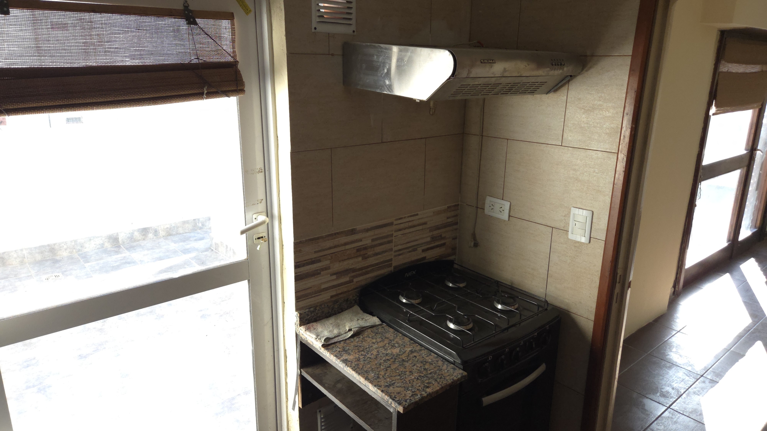 La cocina, completamente equipada con muebles bajo y alto, mesada de granito y acabados de primera calidad, también cuenta con acceso independiente a la terraza, facilitando el entretenimiento y la vida diaria.
