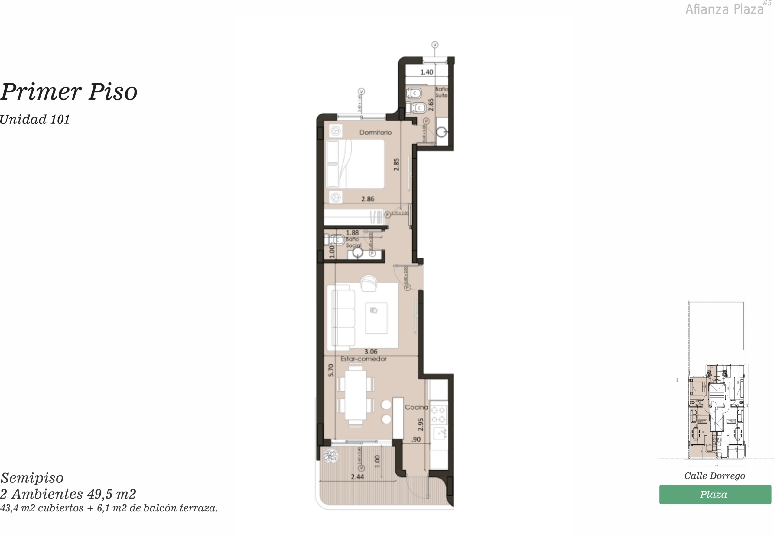 | 1 | 101 | 2 | ESTE | 49,5 m² | DISPONIBLE |