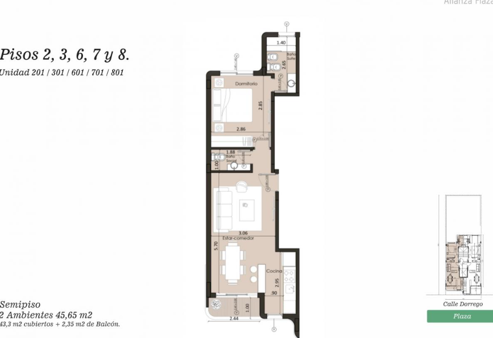 | 3 | 301 | 2 | ESTE | 45,8 m² | DISPONIBLE |